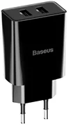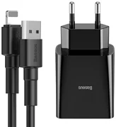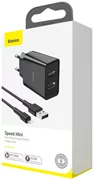 Caricabatterie Baseus Speed Mini Dual U Travel Charger 10.5W White Charging Set With Mini White Cable USB For iP 2.4A 1m Black