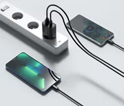 Dotato di porte di alimentazione: USB-C (PD30W) e USB-A (QC3.0), consente di caricare due dispositivi contemporaneamente.