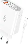 XO-L100 è un caricatore di rete con 4 porte USB-A che supportano la ricarica rapida. Il caricabatterie è dotato di protezioni contro le sovratensioni e le sovratemperature per garantire la massima sicurezza durante l'uso. La potenza di uscita totale delle porte 1-4 è di 18W. Quando si utilizza una singola porta, i valori per USB1 sono 5V/3A, 9V/2A, 12V/1,5A, mentre per USB 2, 3 e 4 sono 5V/1,5A.
