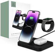 Il caricabatterie a induzione A11 di Tech-Protect ti consente di caricare tre dispositivi contemporaneamente o completamente separatamente: iPhone o Android, Airpods e Apple Watch.
