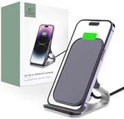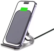 Il caricabatterie è realizzato in alluminio, PC e ABS di alta qualità che lo rendono molto resistente ed elegante. Sia la parte inferiore che la base sono state rivestite con materiale antiscivolo, che mantiene il caricabatterie saldamente fermo e il telefono su di esso non scivola.