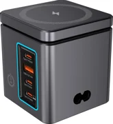 Dotato di 3 porte USB-C e 1 USB-A, nonché di 2 zone di ricarica wireless (15 W per il telefono e 5 W per le cuffie), il BW-i113 distribuisce in modo intelligente la potenza, massimizzando la velocità di ricarica. Di conseguenza, potrete caricare un Samsung Galaxy S22 fino al 60% in 30 minuti, un iPhone 16 fino al 54% e un MacBook Pro fino al 45%. Inoltre, il caricabatterie supporta protocolli di ricarica rapida come PD o QC.