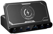 Il caricatore di rete BlitzWolf BW-S27 è un potente strumento di ricarica che soddisfa facilmente anche le richieste degli utenti più esigenti. Dotato di sei porte (4x USB-C e 2x USB-A) e di una base di ricarica wireless, consente di caricare diversi dispositivi contemporaneamente. Si distingue inoltre per la potenza massima di uscita di 160 watt e l'ampia compatibilità.