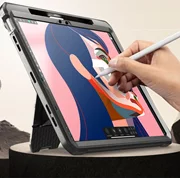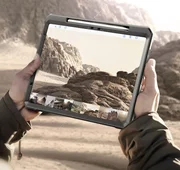 L'armatura che avvolge il retro e i bordi del dispositivo è realizzata con una miscela di termoplastica morbida e rivestimento in policarbonato indurente, che le conferisce un'elevata resistenza. La custodia è dotata di coperture per i pulsanti e di tappi per le porte bloccabili per evitare l'ingresso di polvere, sporco e umidità.