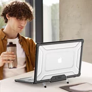 Il supporto integrato e pieghevole consente di posizionare il laptop in modo ergonomico, garantendo il comfort durante il lavoro quotidiano. La custodia presenta tagli precisi che consentono all'utente di accedere a tutte le porte e funzioni del dispositivo. Il design sottile rende la custodia facile da trasportare e perfetta sia per l'ufficio che per i viaggi.