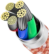 Il cavo è realizzato con prodotti di alta qualità come elementi in ABS resistenti all'ossidazione e allo sbiadimento. Le parti in gomma proteggono le porte e le estremità in metallo del telefono. Un alloggiamento in nylon intrecciato protegge il cavo dall'esterno, prevenendo deformazioni e rotture dovute alla flessione. Il set include un velcro, che puoi usare per chiudere il cavo dopo averlo piegato. Compatibile con i dispositivi Apple della serie da 12 a 6S. Il prodotto è conforme al protocollo 18W e 20W.