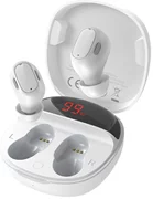 Cuffie wireless estremamente piccole e leggere. La custodia di ricarica è di dimensioni compatte, il che la rende molto facile da trasportare: troverà posto in qualsiasi zaino o borsa. Disponibile in tre versioni di colore: bianco, nero e rosa. Ora, grazie al display, è possibile vedere la durata della riproduzione delle cuffie.