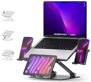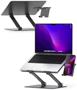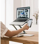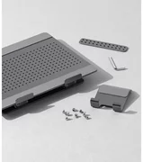 La parte principale del set è stata creata per un laptop o un tablet. Il design robusto e robusto consente di utilizzare dispositivi fino a 17" con un carico massimo fino a 5 kg. Eccezionale è dotato di giunti regolabili, grazie ai quali possiamo regolare l'altezza e l'angolo di inclinazione, migliorando la postura e il comfort durante l'uso. Inoltre, il produttore ha adattato il supporto con un supporto estremamente pratico per telefono o tablet, che può essere fissato in un posto comodo per te.