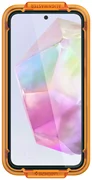 Il vetro temperato della serie "AlignMaster" di Spigen è stato fissato con un telaio di montaggio perfettamente tagliato sulla parte anteriore del telefono, grazie al quale è possibile posizionarlo perfettamente sullo schermo. Il produttore ha semplificato il processo di montaggio a tal punto da renderlo del tutto intuitivo per ogni utente.