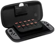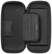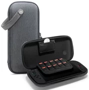 La custodia è realizzata con un resistente guscio in EVA che protegge efficacemente la console dagli urti, mentre l'interno è rivestito in morbida microfibra per proteggere lo schermo dai graffi. Le cerniere in metallo assicurano la durata e la fluidità d'uso, mentre il cinturino in nylon con finiture in pelle PU garantisce una comoda maneggevolezza.