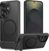 CasoTech-Protect MagRack MagSafe è una soluzione funzionale che combina una protezione robusta con un pratico supporto. Realizzata in resistente materiale TPU e policarbonato, protegge efficacemente lo smartphone da urti, cadute e graffi mantenendo un profilo sottile. La finitura opaca conferisce alla custodia un tocco elegante e professionale.