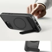 Il supporto integrato ed estensibile consente di posizionare comodamente il telefono in orizzontale e in verticale, ideale per guardare video, videochiamare o sfogliare contenuti. Il design robusto del supporto garantisce stabilità e, una volta utilizzato, si ritrae facilmente nella parte posteriore della custodia senza aumentare le dimensioni. L'anello magnetico MagSafe integrato garantisce la piena compatibilità con gli accessori MagSafe e consente la ricarica wireless senza rimuovere la custodia.