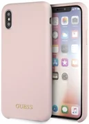 Collezione: Silicone Tipo: Custodia rigida Materiale: silicone & microfibra Colore: rosa chiaro Compatibilità: iPhone X Prodotto realizzato su licenza di Guess.