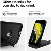 La custodia, dotata di una gamba, consente di guardare ciò che sta accadendo sul display del telefono senza doverlo tenere senza problemi. La custodia è perfettamente abbinata e non limita la possibilità di ricarica wireless.