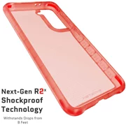 An anti-slip hand grip has been built into the Galaxy S21+ phone case to help prevent everyday drops and falls. If a drop does occur, the next generation R2x shockproof technology will make sure your phone survives just fine. The case has been military-grade drop tested and is rated to withstand drops from up to 8 feet. Focusing on the Galaxy S21 Plus's most advanced features, the S21 5G phone case has also been built with an extra durable raised bumper edge. In the front, this helps protect the Galaxy S21’s Gorilla Glass Victus screen and AMOLED 2X Adaptive 120Hz Super Smooth Display. On the back of the case, the bumper offers extra protection for the Galaxy S21 Ultra’s advanced cameras.