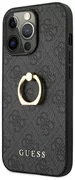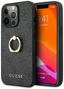 Collezione Guess 4G con supporto ad anello. È caratterizzato da un'elegante trama a scacchi che imita la pelle, decorata con una pratica maniglia a forma di anello sul retro della custodia, che consente di infilarci il dito e utilizzare il dispositivo in modo comodo ma sicuro. Saffiano aggiungerà una sofisticata estetica Guess al tuo iPhone e fornirà una certa protezione.