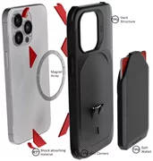 Are you trying to simplify your everyday carry? Pick up the newly improved EXEC iPhone 13 Pro wallet case. Redesigned and precision molded for the iPhone 13 Pro Series, this cover offers convenience, protection, and style. The iPhone 13 Pro card case can securely hold your credit cards, ID, or transportation cards. The built-in clip makes sure your cards never fall out unexpectedly. The wallet also features a swivel locking mechanism that makes it quickly and easily detachable. When attached, the credit card holder has a built-in metal plate to support magnetic mounts. When removed, the case also has MagSafe magnets built in to support the Apple MagSafe Charger as well as some Mag accessories. Beyond the card slots, this iPhone 13 Pro card case also offers heavy-duty shockproof protection. The military-grade design includes a TPU hard outer structure, a soft absorbent protector layer, and an extra raised bumper edge to protect the camera lenses, flash, and iPhone screen. The iPhone 13 Pro MagSafe card holder cover is available now in black, pink, or gray.
