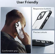 Custodia monopezzo ESR Air Armor, composta da zaini rigidi e trasparenti e una struttura flessibile intorno, realizzata in materiale termoplastico e morbido, che protegge ulteriormente il dispositivo da eventuali danni.