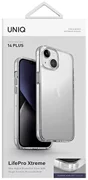 UNIQ LifePro Extreme è una custodia ibrida progettata con la tecnologia AirMax™ a 360°, che offre una protezione efficace per il vostro iPhone 14 Plus contro i rischi quotidiani, mentre il design Slim & Clear enfatizza la bellezza naturale del telefono.