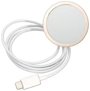 Elegante caricatore a induzione di colore oro, che consente di ricaricare gli smartphone compatibili senza doverli collegare al caricatore. Grazie ai magneti perfettamente abbinati, si attacca saldamente al dispositivo, accelerando la ricarica di energia. È sufficiente posizionare il dispositivo direttamente sul caricabatterie e il telefono inizierà a caricarsi automaticamente.