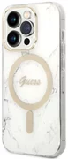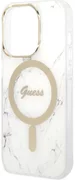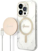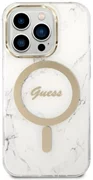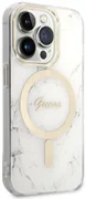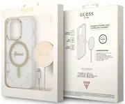 Gli insoliti effetti visivi sono garantiti dagli accessori dorati sotto forma di una cornice intorno alla fotocamera e dall'emblema della casa di moda Guess. Grazie all'uso di accessori dorati, la custodia acquista un carattere più caldo. Per la massima comodità dell'utente, la custodia è dotata di un anello magnetico compatibile con la tecnologia MagSafe che consente una ricarica rapida e senza fili.