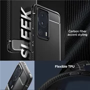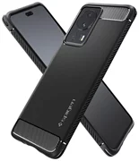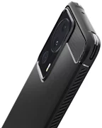 Custodia protettiva relativamente sottile di Spigen. Realizzata in plastica TPU resistente all'abrasione, durevole e flessibile. Rugged Armor è rivestita in fibra di carbonio lucida, che crea un'elegante texture di carbonio. Il prodotto si adatta perfettamente, è completamente funzionale, non limita l'accesso alle porte esterne e protegge efficacemente il dispositivo da graffi o cadute. Rugged Armor seduce con il suo design moderno!