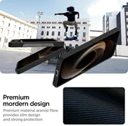 La caratteristica principale che contraddistingue questa custodia è la costruzione in policarbonato di alta qualità, rifinito con fibra aramidica, che non solo è leggera ma offre anche una durata eccezionale. Uno strato aggiuntivo assicura che la custodia rimanga pulita e resistente alle impronte digitali.