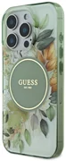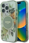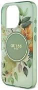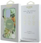 Questa elegante collezione delizierà anche i gusti più esigenti e sofisticati. Lo strato esterno della custodia affascina con un delicato motivo floreale in tonalità che si armonizzano perfettamente con il colore della custodia, creando un insieme coeso. Al centro si trova un anello MagSafe in oro, che mette perfettamente in risalto il logo GUESS su uno sfondo verde. Questo design unico non solo aggiunge eleganza ma fornisce anche funzionalità e protezione, rendendo la custodia un accessorio di stile per gli utenti più esigenti.