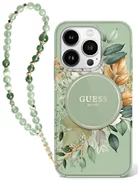 La custodia si distingue per l'elegante motivo floreale che le conferisce un carattere delicato ed elegante. L'anello MagSafe in oro e il logo in oro sottolineano in modo sottile l'aspetto lussuoso dell'accessorio. Al centro della cassa si trova un cerchio colorato che si abbina armoniosamente al motivo generale, aggiungendo contrasto e fascino. Un cinturino di perle nella stessa tonalità della cassa completa il design, fungendo da elemento decorativo e funzionale.