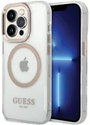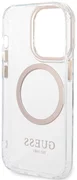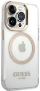 La custodia metterà perfettamente in risalto il design unico del vostro iPhone, è decorata con elementi dorati come la cornice intorno alle lenti, i pulsanti e il logo Guess. La custodia è dotata di un anello magnetico compatibile con il caricatore wireless MagSafe, che garantisce una ricarica rapida e semplice. L'anello magnetico si abbina perfettamente ai colori della cover.