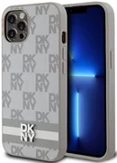 Custodia DKNY PU con motivo a quadretti e righe per iPhone 12 beige (DKHCP12MPCPTSSE)