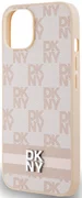 Ogni custodia è ornata da un motivo unico con le iniziali dell'esclusiva casa di moda DKNY, che formano un notevole motivo a scacchi. Questo motivo è molto particolare e attira l'attenzione con il suo design unico. La decorazione aggiuntiva comprende ampie strisce nella combinazione di colori della cassa, per ottenere armonia ed eleganza. L'intero design è completato dal logo DKNY in metallo, che sottolinea il prestigio e l'autenticità della collezione.
