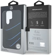 Questa custodia della collezione combina lusso, funzionalità e tecnologia moderna. Realizzata con materiali di altissima qualitàSilicone con una finitura opaca, arricchita da una dinamicalinee blu e ilMercedes-Benz logo.
