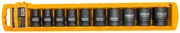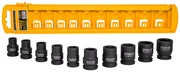 Il set di bussole a impatto INGCO HKISSD12101 contiene 10 punte con dimensioni che vanno da 10 a 24 mm. Sono compatibili con prese da 1/2 «e offrono una lunga durata.