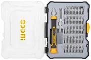 Set di cacciaviti di precisione INGCO HKSDB0348 contiene 30 punte diverse, impugnatura ergonomica e pratico portapunte 4x60 mm. Gli strumenti sono realizzati con materiali durevoli e resistenti all'usura e offrono un elevato comfort durante il lavoro. Possono essere utilizzati sia in officine domestiche che professionali. Tutti gli elementi del set sono stati collocati in una pratica scatola.