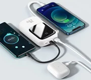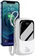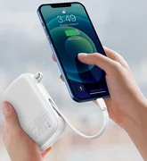 Grazie al fatto che il powerbank ha un cavo con un connettore Lightning all'interno, non è necessario prendere cavi aggiuntivi e la pratica clip consente una facile presa e un comodo trasporto.