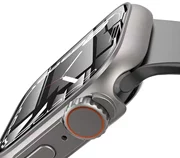 Una cassa sottile e leggera con vetro integrato, progettata per adattarsi perfettamente all'Apple Watch.