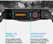 I tagli precisi assicurano un facile accesso a tutte le funzioni e le porte, consentendo di utilizzare il dispositivo, mentre gli accenti arancioni aggiunti alla lunetta e al cinturino incorporati aggiungono un tocco unico.