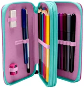 L'astuccio a due scomparti, che misura 20x14x5 cm, è realizzato in poliestere resistente, che garantisce durata e resistenza all'uso quotidiano. Il suo design si rifà all'estetica colorata e allegra della Casa del Gatto di Gabi, rendendolo non solo pratico, ma anche un'attraente aggiunta allo zaino scolastico.