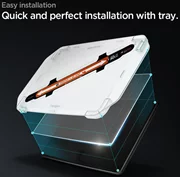 Vetro temperato con un metodo di installazione rivoluzionario: se finora ti sei spaventato con questo aspetto usando il vetro temperato, i tuoi problemi sono stati risolti! Il vetro temperato è stato protetto con un taglio perfetto sulla parte anteriore del tablet con una cornice di montaggio, che consente di posizionarlo perfettamente sullo schermo. Il produttore ha semplificato il metodo di assemblaggio al punto che è completamente intuitivo per ogni utente.