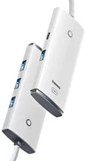 Semplifica il funzionamento del tuo computer. L'hub Baseus 4-in-1 offre 4 porte USB 3.0 e consente di trasferire file a velocità fino a 5 Gbps. Si distingue per la sua ampia compatibilità e, grazie al sistema Plug&Play, è estremamente facile da usare. Leggero, compatto e resistente: può accompagnarti quasi ovunque.