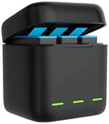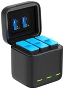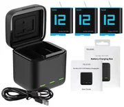 Il caricabatterie TELESIN per la ricarica delle batterie delle videocamere della serie GoPro Hero 9, 10, 11 e 12 è stato progettato per chi desidera che i propri dispositivi siano sempre pronti. Non solo consente di caricare istantaneamente le tre batterie, ma permette anche di conservarle in modo sicuro insieme alle schede di memoria. Il kit comprende anche 3 batterie ricaricabili con una capacità di 1750 mAh ciascuna.